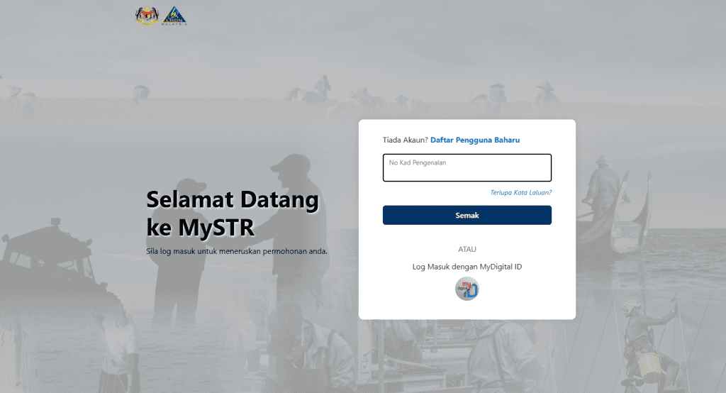 MySTR Login requires a registered Mykad Number and Password.